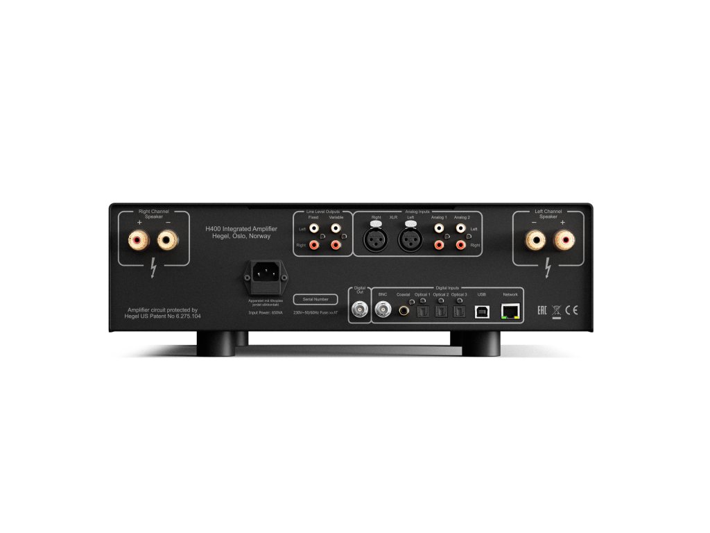 H400 je optimalizován pro jednoduchost, podporuje oblíbené streamovací platformy, jako je AirPlay, Spotify Connect, Roon Ready, Tidal Connect, Google Cast™ a UPnP. Uživatelé mohou ovládat zesilovač prostřednictvím těchto služeb přímo. Navíc aplikace Hegel Control App poskytuje ovládání hlasitosti a vstupu a přístup k internetovému rádiu, podcastům a médiím přehrávání na serveru, což zlepšuje celkovou uživatelskou jednoduchost a komfort.