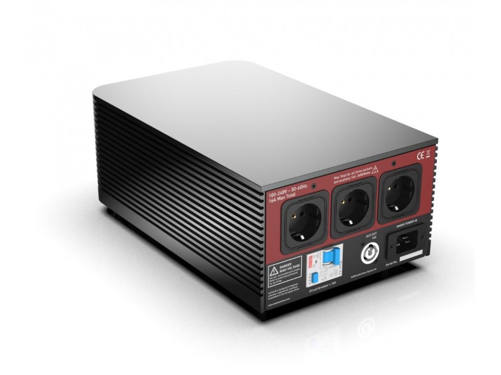 3 nezávislé vysokoproudé výstupy pro výkonové zesilovače, subwoofery, aktivní reproduktory a televizory atd (16A).