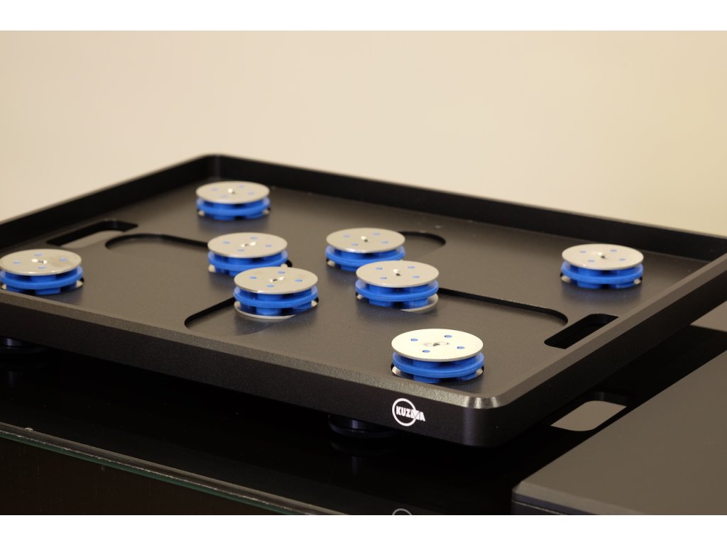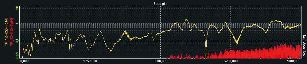 Horní deska a spodní rám jsou odděleny vícevrstvými silikonovými a hliníkovými tlumiči, které filtrují vibrace v slyšitelném rozsahu. Viz graf DEWESOFT změřený systémem DEWESOFT: