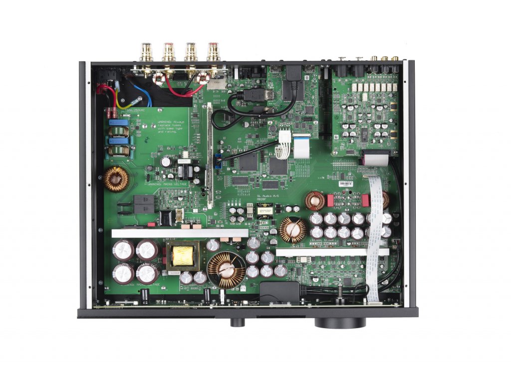 Řada vstupů a výstupů poskytuje spoustu možností pro připojení zdrojů zvuku a videa: Sedm digitálních vstupů včetně optických, koaxiálních, AES/EBU, USB-B, USB-A, dva analogové vstupy RCA pro analogové zdroje hudby, jeden volitelný analogový modul pro více analogových vstupů včetně XLR a gramofonových MM a jeden volitelný modul HDMI 2.1 se dvěma vstupy a jedním výstupem ARC / eARC.
