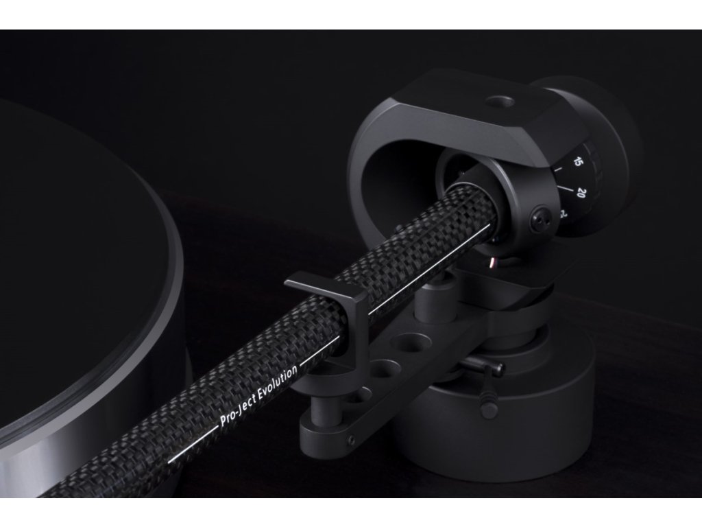 Tento nepřekonatelný technický základ je osazen 10" ramenem z uhlíkových vláken – Pro-Ject 10cc Evolution, extrémně tichým hnacím motorem a integrovaným Speed Boxem SE, který přesně řídí otáčky a umožňuje elektronické přepínání a korekci rychlosti otáčení talíře.
