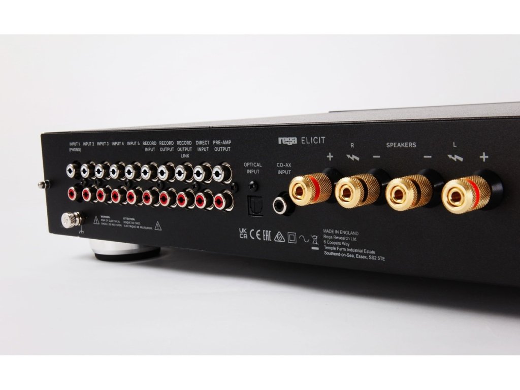 V rámci přístroje byly použity jen ty nejkvalitnější komponenty jako potenciometr hlasitosti Alps, vysoce kvalitní relé, polypropylenové kondenzátory a výstupní tranzistory Sanken. Díky svému odvážnému výkonu, bohaté konektivitě a vysoce kvalitní konstrukci ve stylovém těle zapadne nový Rega Elicit MK5 opravdu do jakékoli sestavy.