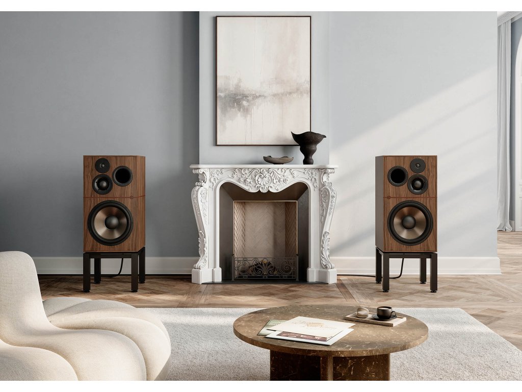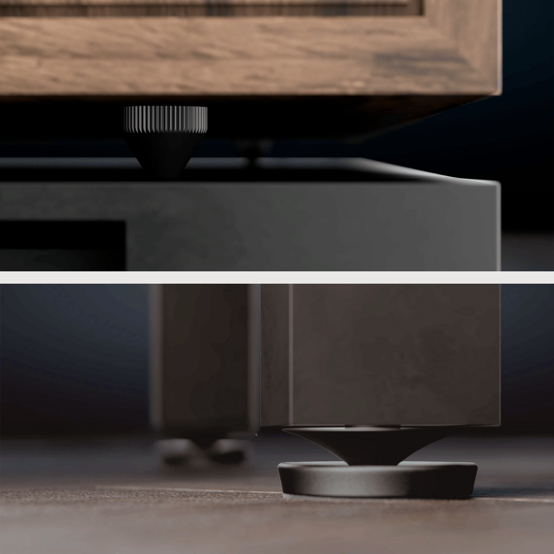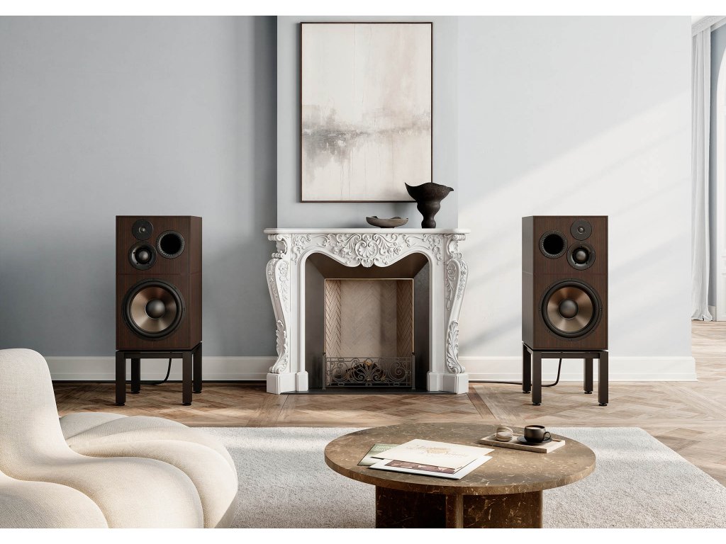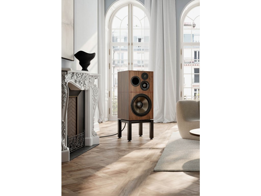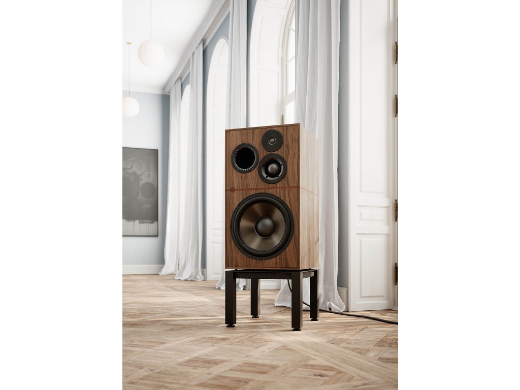 Skříň a stojan, navržené pro maximální tuhost, kontrolu rezonance a čistou reprodukci zvuku, pracují v dokonalé harmonii a zajišťují bezkompromisní akustický výkon.