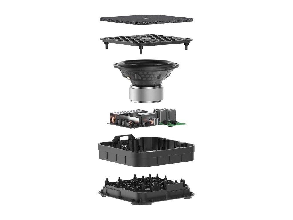 Subwoofer AMBEO Sub je vybaven 10palcovým reproduktorem s dlouhou projekční vzdáleností a výkonným zesilovačem, který je schopen produkovat hluboké basy o nízkých frekvencích s přesností a působivostí, a tím umocnil celkový zvukový zážitek.