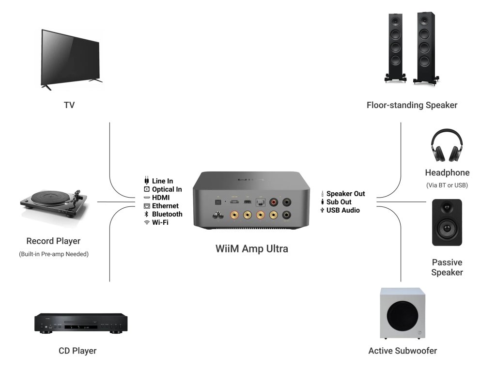 Nejvyšší model streamovacích zesilovačů WiiM, výkon 2×100 W (8 Ω), 200 W (4 Ω). Šasi z hliníku s optimalizovaným chlazením; 3,5” barevný dotykový displej; Technologie Post-Filter Feedback;